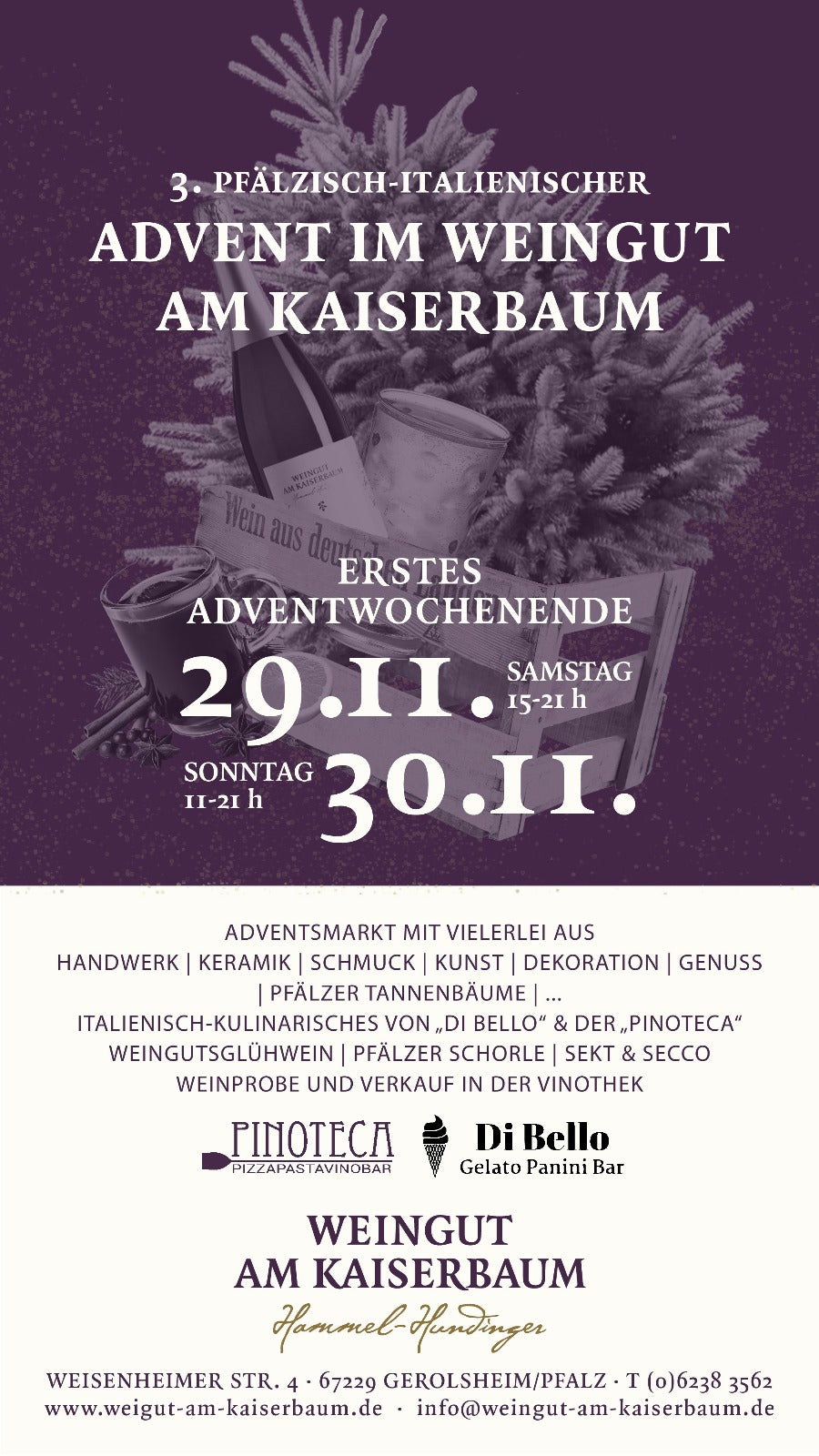 Ich freue mich auf euren Besuch und auf ein wunderschönes Adventswochenende im Weingut am Kaiserbaum.