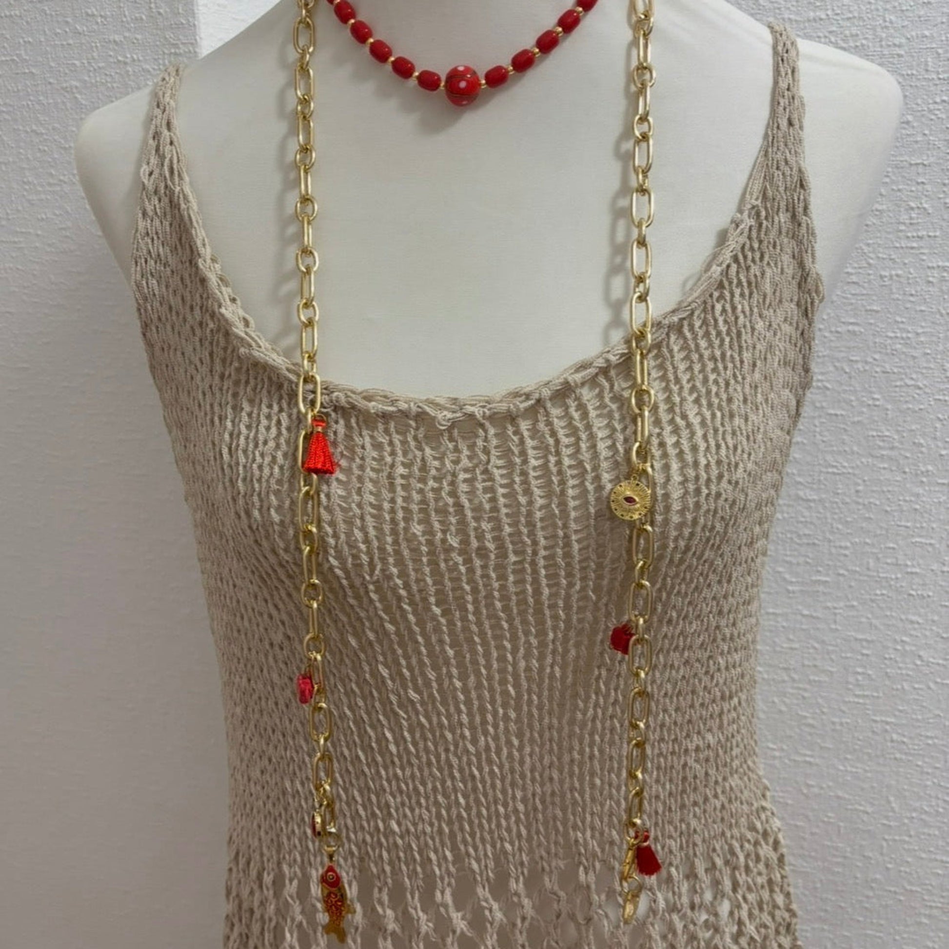Ideal als Statement-Kette, für Sommerlooks, Festivals, Urlaub oder als besonderes Geschenk.
