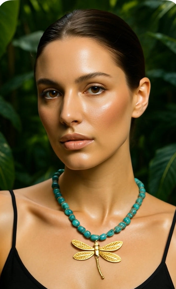AMAZONIT - kurze Kette aus Amazonit Steinen mit einem Libellenanhänger