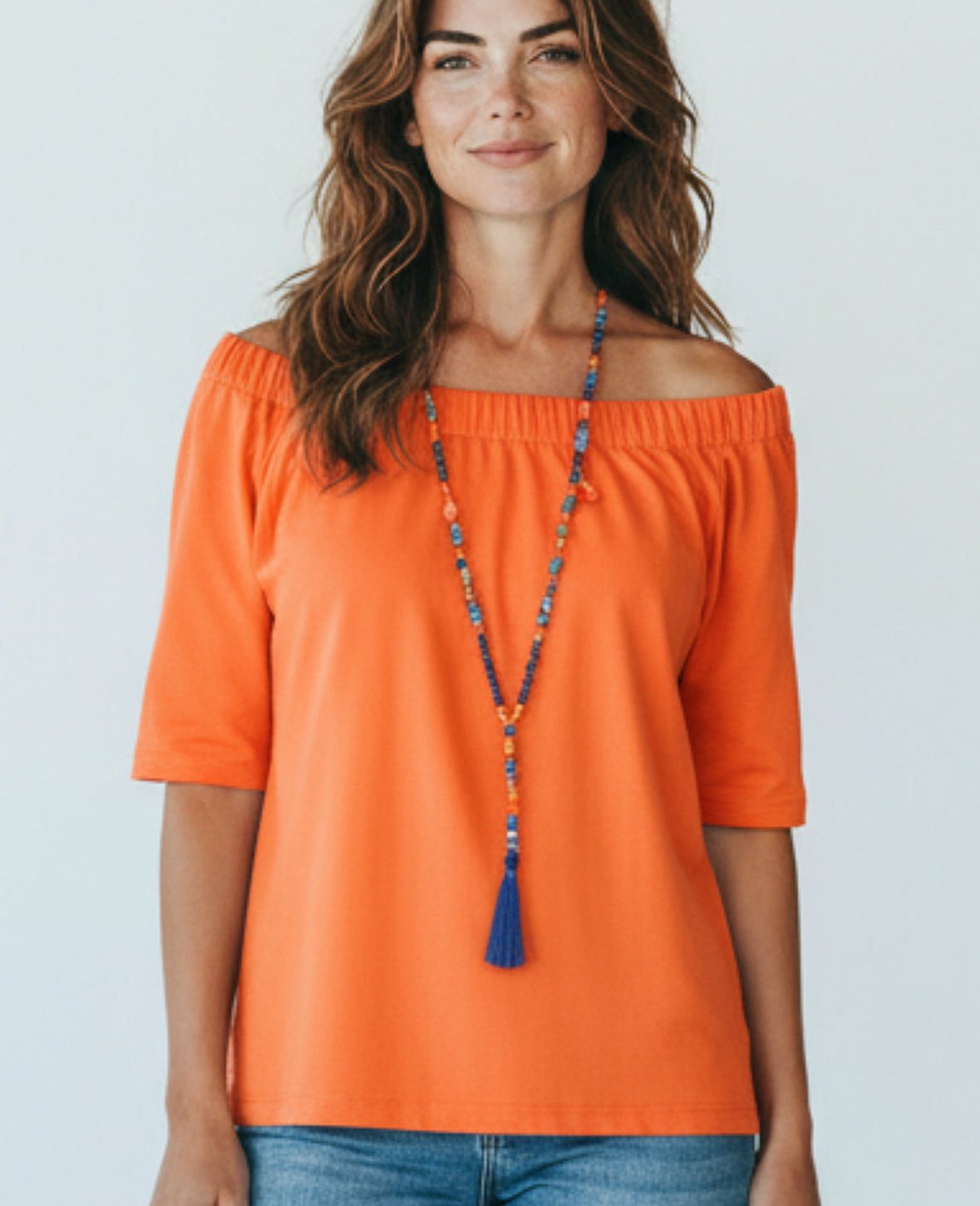 Diese lange Boho Kette wird Dich zur Fashionista machen. Die außergewöhnliche Farbkombination von Blau und Orange werden alle Blicke auf sich ziehen. Außerdem ziert die handgearbeitete Perlenkette eine seidige Quaste in einem dunklen Blau und wertet das Schmuckstück optisch auf. Eine kleine Textilblüte in orange und 2 Porzellan Perlen in Herzform vollenden die Unikat Kette. Hole Dir dieses Accessoire und lass Dich bewundern!