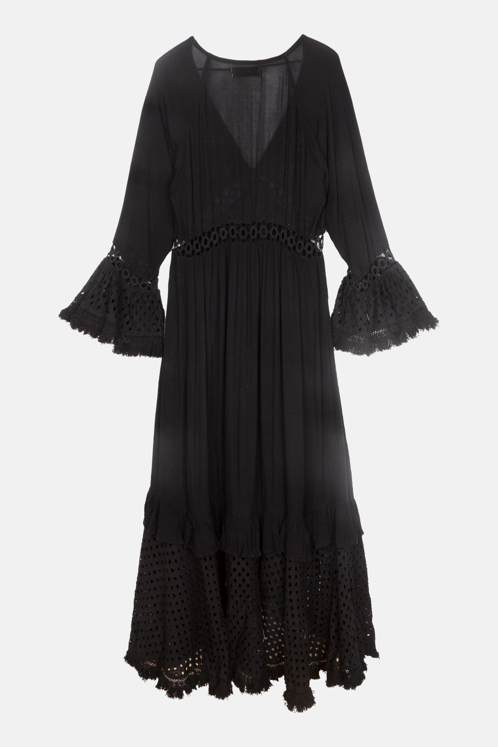 Maxi Kleid schwarz SICILIA mit Volants und broderie anglaise